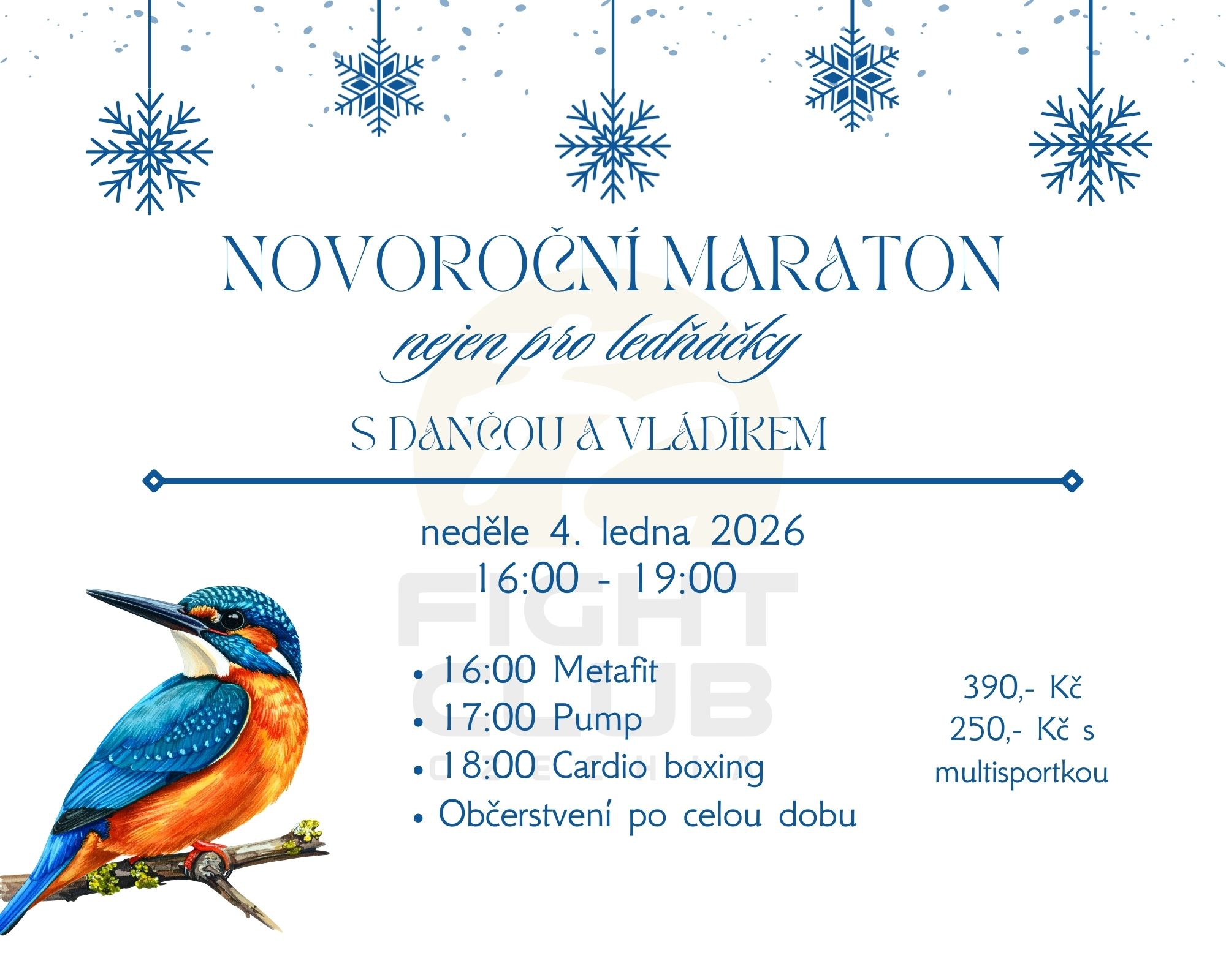 Neděle 4. ledna 2026, na ten den si nic neplánuj a přidej se k Danče a Vládíkovi na tři třičtvrtěhodinky cvičení, které bude proložené, ostatně jako vždycky, i hromadou chutného občerstvení (to aby ten návrat k realitě nebyl tak bolestný).
